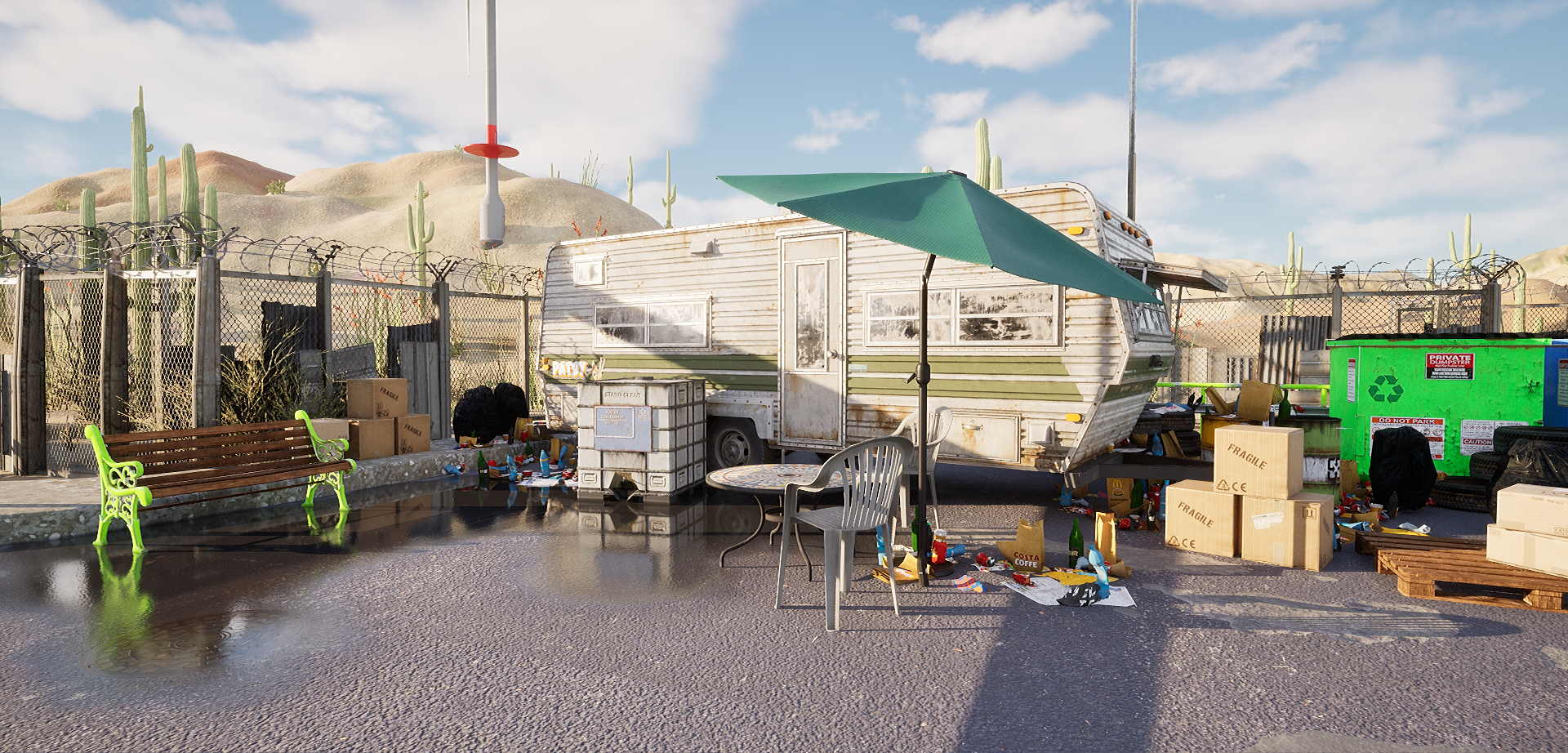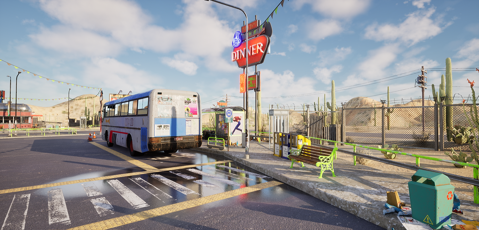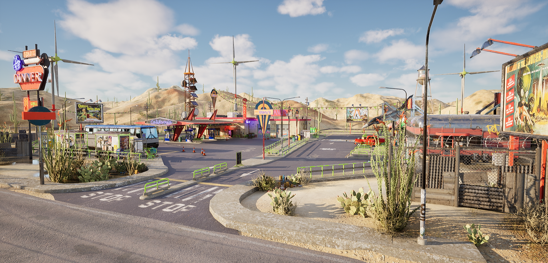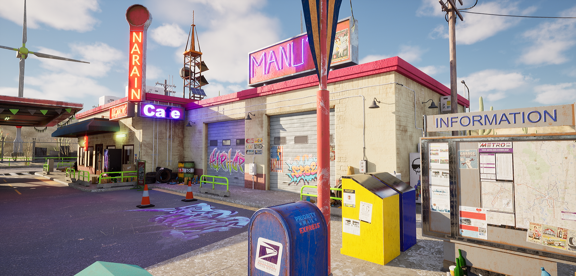 This project presents a detailed recreation of an American diner and fuel station, inspired by classic roadside stops commonly found across the United States. The environment captures the nostalgic charm and functional design typical of these locations. The majority of the assets featured in the scene are meticulously crafted from scratch, ensuring originality and attention to detail. The modeling process was carried out using Maya, where each element was carefully shaped to achieve realistic proportions and structure. Texturing was done in Substance Painter, allowing for precise material application and weathering effects to enhance authenticity. Finally, the entire scene was assembled and rendered in Unreal Engine 5, leveraging its advanced lighting and visual capabilities to create an immersive and lifelike environment.