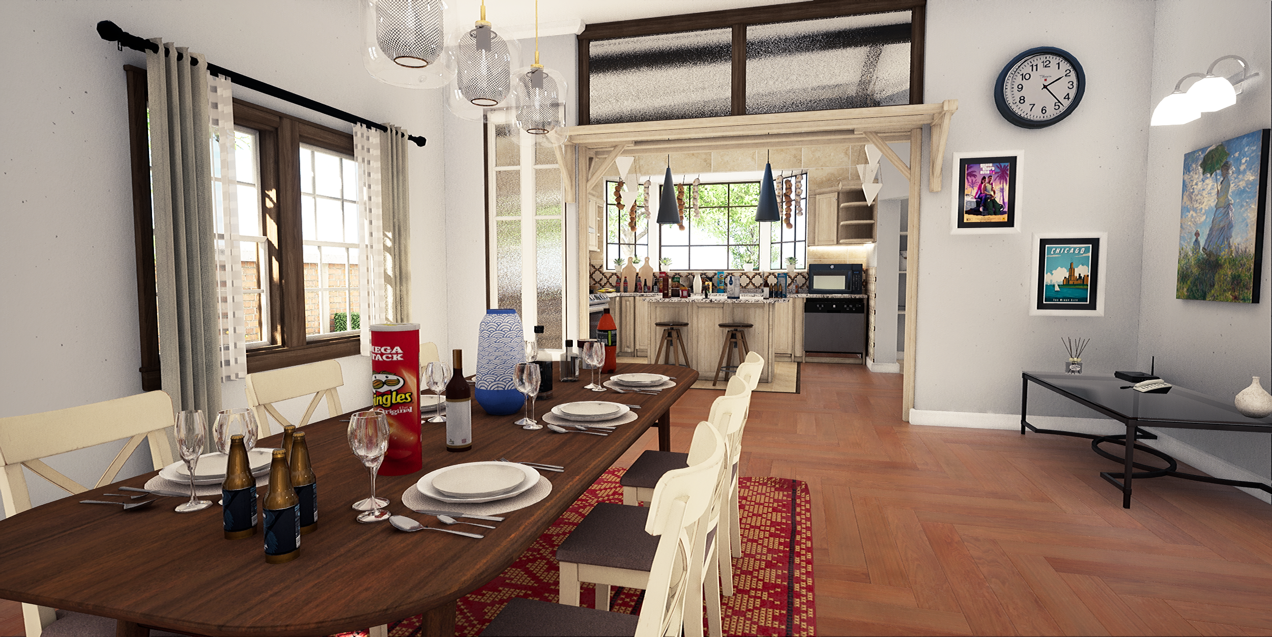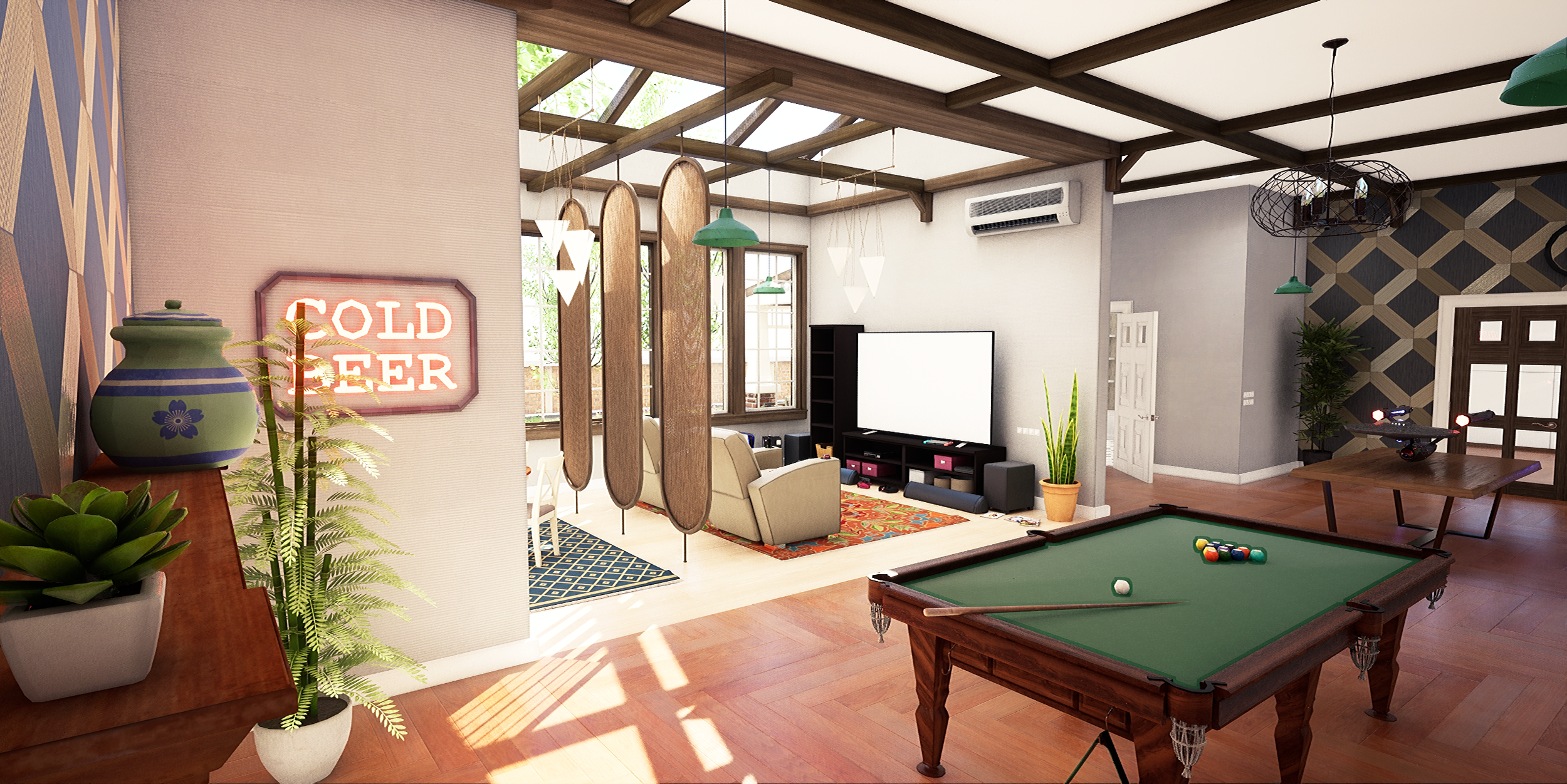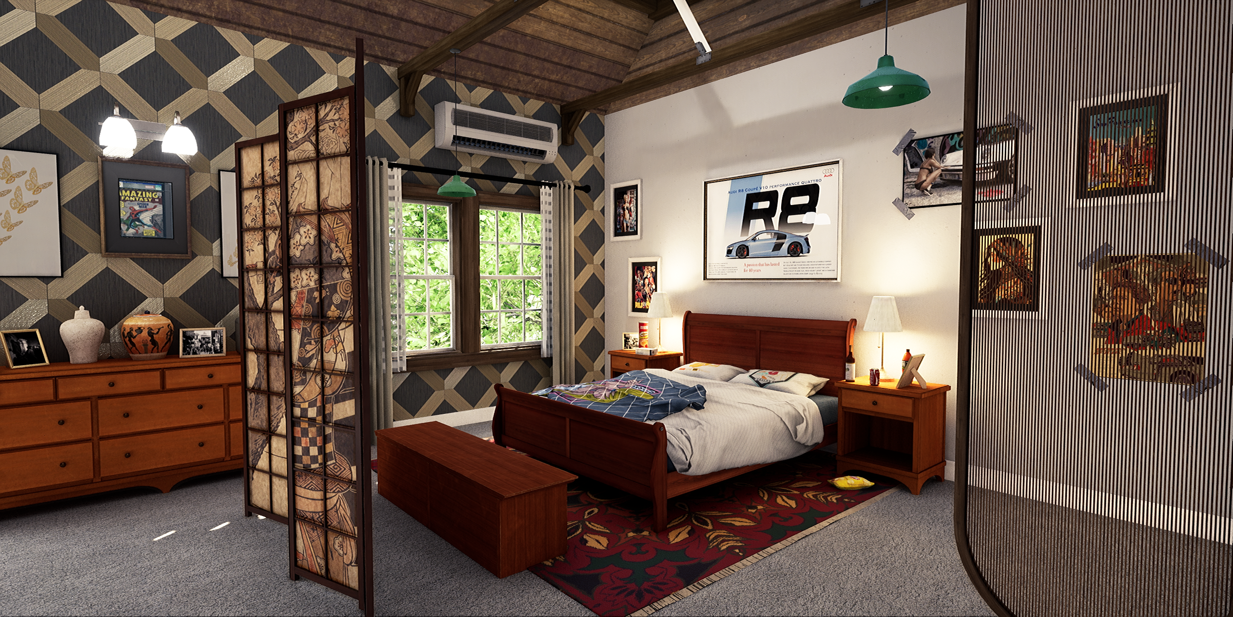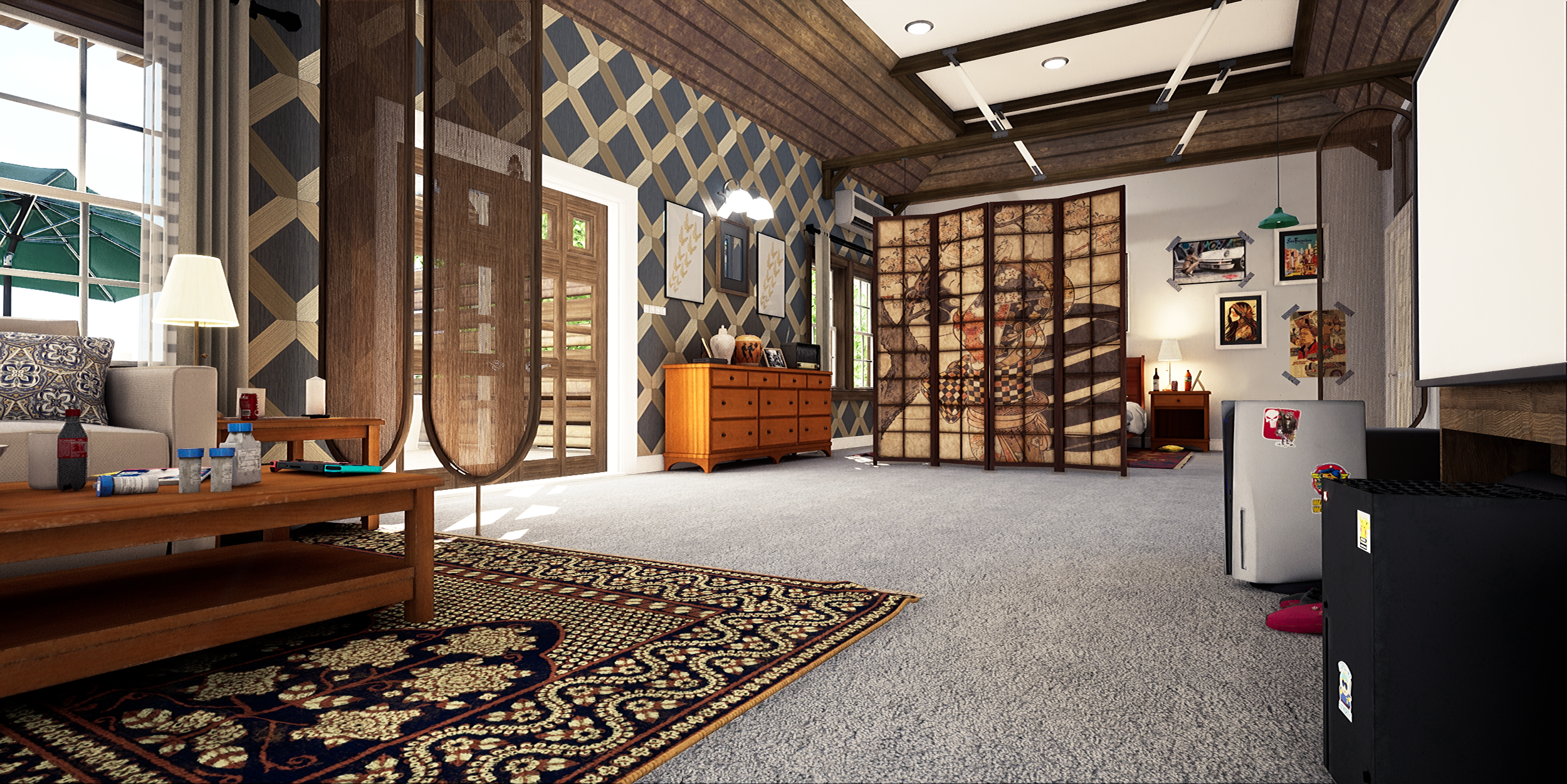 I created an ArchViz project of a Western Gamer House using Unreal Engine 5, handling all aspects of the project independently. From designing the environment and modeling the assets to setting up lighting, textures, and interactive elements, I showcased my skills in architectural visualization and baked rendering. The project highlights a detailed, immersive 3D representation of the space, demonstrating my proficiency in using Unreal Engine 5 for high-quality visualizations. I have done modeling, texturing, lighting, and setting up shaders in Unreal Engine. I have also done baked lighting and rendered the final project showcase within Unreal Engine.